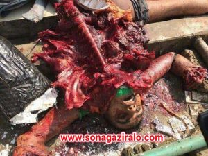 ছবিতে দেখা গেছে, আত্মঘাতী হামলাকারীর ছিন্নভিন্ন মরদেহটি র্যাবের নির্মাণাধীন সদর দফতরের ভেতরে চৌবাচ্চা ও শৌচাগারের মাঝামাঝি পাকা মেঝেতে পড়ে আছে। মরদেহের বামপাশে রয়েছে ছোট্ট একটি কালো ব্যাগ, পরনে ছেড়া কালো প্যান্ট, পায়ের কাছে লাল একটি গামছার মতো কাপড়, পেটের কাছে সাদা চেকশার্টের ছেড়া অংশ, গলায় প্যাচানো রয়েছে টিশার্টের অংশ। এছাড়া মাথার কাছে একটি ক্যাপ পড়ে আছে, আর পায়ের কাছে স্যান্ডেল। মরদেহের দুই-তিন গজ দূরে অর্থাৎ চৌবাচ্চার পশ্চিম কোনে জমে আছে ছোপছোপ রক্ত।