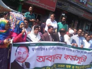 গ্যাসের মুল্য বৃদ্ধির প্রতিবাদে কেন্দ্রীয় কর্মসুচির অংশ হিসেবে ফেনী জেলা বিএনপি অবস্থান কর্মসুচি পালন করেছে।বৃহস্পতিবার সকালে শহরের ট্রাংক রোড়ে অবস্থান কর্মসুচির চলাকালে অবিলম্বে গ্যসের মুল্য বৃদ্ধির সিদ্ধান্ত প্রত্যাহারের জন্য সরকারের কাছে দাবী জানান।এসময় জেলা বিএনপি ও অঙ্গসংগঠনের বিপুল সংখ্যক নেতাকর্মী উপস্থিত ছিলেন।