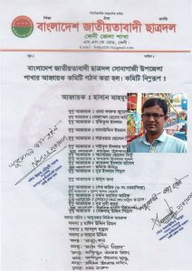 হাসান মাহমুদ কে আহবায়ক করে ১৩ বছর পর সোনাগাজী উপজেলা ছাত্রদলের ৩০ সদস্য বিশিষ্ট কমিটি ঘোষনা করেছে ফেনী জেলা ছাত্রদল।