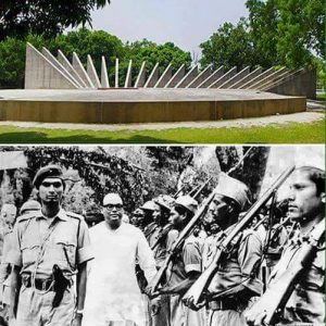 ◽️ছবিতে উপরে মুজিবনগর স্মৃতিস্তম্ভ: নীচে অস্থায়ী রাস্ট্রপতি সৈয়দ নজরুল ইসলাম গার্ড অব অনার গ্রহন করছেন॥
