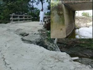 এলাকাবাসী জানান- ফাইলিং না করে যাচ্ছেতাই ভাবে ব্রীজটি নির্মাণ ও গত তিন মাস আগে উক্ত খাল খননের কারনে ব্রীজ টি তলিয়ে যাচ্ছে।
