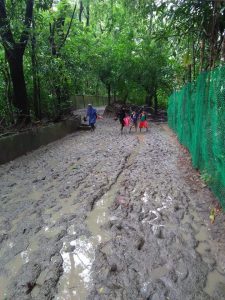 ওই ওয়ার্ডের ইউপি সদস্য মোহাম্মদ শাহজাহান জানিয়েছে, কর্মসৃজন প্রকল্পের আওতায় মাটি দিয়ে রাস্তাটি উঁচু করা হয়েছে কিন্তু অতি বর্ষনের কারনে বৃষ্টির পানি নিস্কাষিত না হতে পেরে পুরো রাস্তাটি কর্দমাক্ত হয়ে পড়ে।
