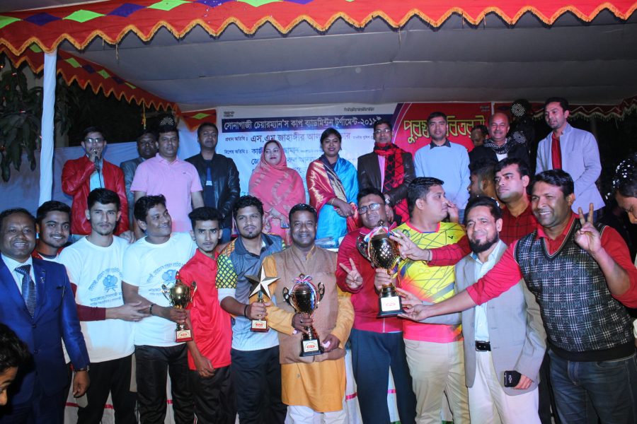 বর্নিল আয়োজনে সোনাগাজী চেয়ারম্যান কাপ ব্যাডমিন্টন টুর্ণামেন্টের ফাইনাল খেলা সোমবার রাতে বিপুল দর্শকের উপস্থিতিতে মডেল থানা মাঠে অনুষ্ঠিত হয়েছে।মডেল থানা কর্তৃপক্ষের পৃষ্টপোষকতায় খেলায় আমিরাবাদ ইউনিয়ন দল মডেল থানা দলকে পরাজিত করে শিরোপা লাভ করে। দশটি দলের অংশগ্রহনে এক সপ্তাহব্যাপী টুর্ণামেন্টে সোনাগাজী মডেল থানা দ্বীতিয় ও চরছান্দিয়া ইউনিয়ন দল তৃতীয় স্থান লাভ করে।