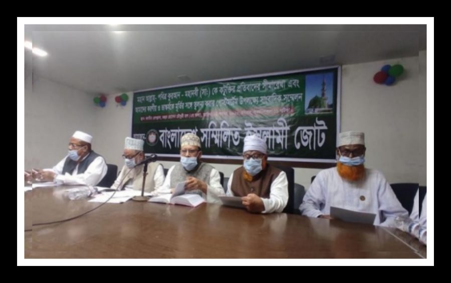 মসজিদকেন্দ্রিক রাজনীতি বন্ধ করার দাবি জানিয়ে ইসলামী জোটের সভাপতি বলেন, ‘মসজিদ আল্লাহর ঘর, এর পবিত্রতা রক্ষা করা আমাদের সকলের কর্তব্য। মসজিদে নোংরা রাজনীতি, কূটনীতি, মিছিল, আন্দোলন, ককটেল, বোমা, মসজিদের মাইক ব্যবহার করে পুলিশের ওপর আক্রমণ করা, পুলিশের অস্ত্র কেড়ে নিয়ে মারধর করা, ইট-পাথর নিক্ষেপ করা কোনো ধার্মিকের কাজ হতে পারে না। একই কথা মাদ্রার ক্ষেত্রেও প্রযোজ্য। অবিলম্বে বিশ্বব্যাপী করোনা মহামারি চালার সময় স্বাস্থ্যবিধি মেনে চলতে সরকারের নির্দেশনা বাস্তবায়নের জন্য আইনের শাসন প্রতিষ্ঠা করতে হবে। এবং জামাত-শিবির হেফাজতি চক্রসহ জঙ্গি মদদ দাতা, ধর্ম ব্যবসায়ী সাম্প্রদায়িক সংগঠনগুলোর সকল রাজনৈতিক কার্যক্রম বায়তুল মোকাররম মসজিদ ও তার চত্ত্বরে নিষিদ্ধ করার জন্য আমরা সরকারের কাছে জোর দাবি জানাই।’